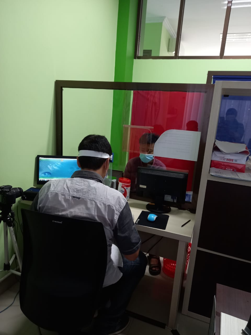 Kepala Dinas Kependudukan dan Pencatatan Sipil Kabupaten Sleman, Jazim Sumirat, SH.,M.Si. pun ikut memantau kegiatan ini, dengan menanyakan kendala dan jumlah pemohon.